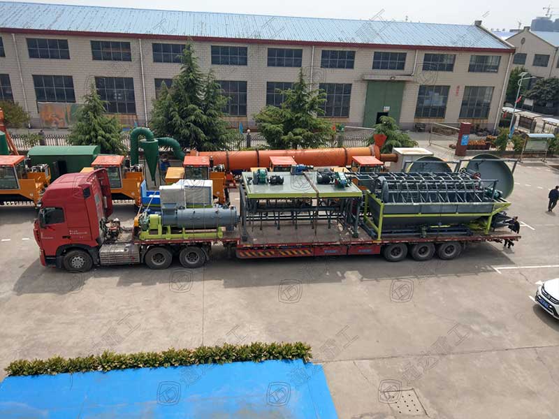 發往安徽安慶的整套有機肥設備已經裝車完畢,運往客戶指定地點。